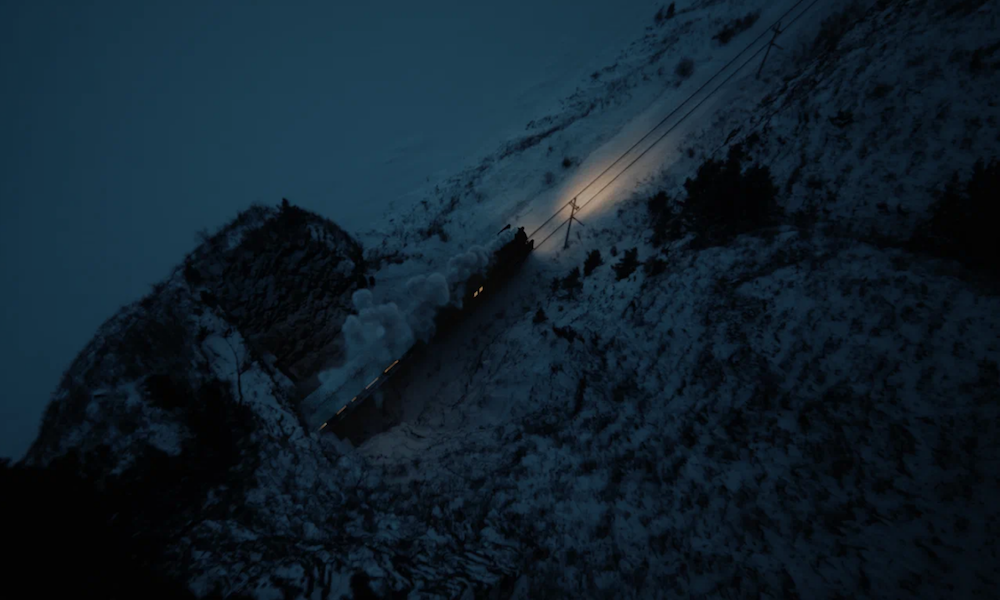 Поезд, на котором перемещаются главные герои, тоже был ненастоящим – в огромном ангаре поместилось несколько вагонов в настоящую величину (из-за того, что артисты были в теплой одежде и часто оказывались в дымовой завесе от пиротехники, их оборудовали незаметными кондиционерами). Для большей реалистичности вокруг стояли специальные экраны, на которых транслировалось изображение проносящихся мимо лесов и полей: эффект погружения, по словам режиссера, был невероятным.