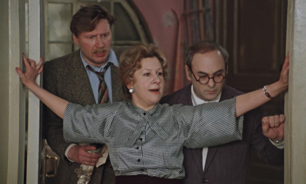 Нина Андреевна Орлович (Елизавета Никищихина) восхищена рассказом Маргариты Павловны о том, что та открыто живет в одной квартире с любовником и мужем. При всей уникальности исходной ситуации применима в обсуждении любых человеческих отношений.