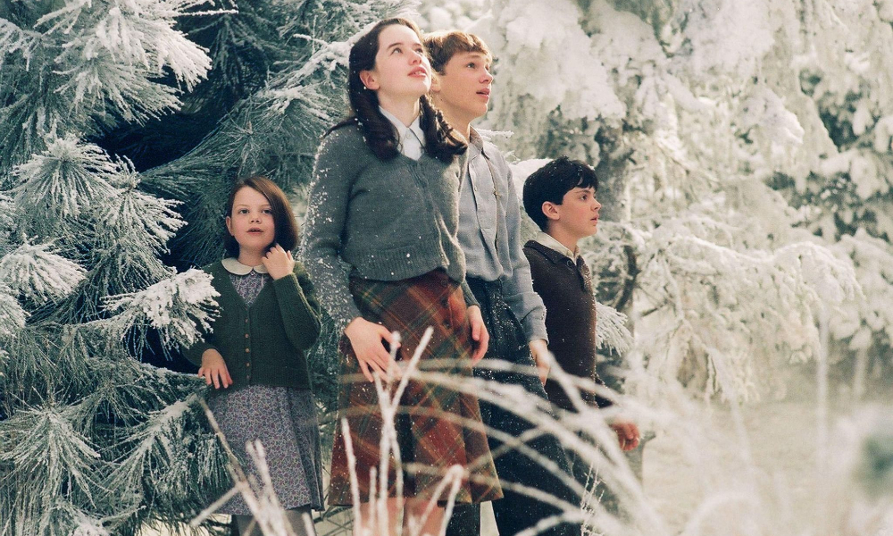 За обычной дверцей платяного шкафа скрывается Нарния – мир, навсегда закованный в зиму чарами Белой Колдуньи (Тильда Суинтон). Серебристо-синие леса, неподвижные сугробы, застывшие водопады и одинокий фонарь среди снегов создают очаровательную сказку, в которой время остановилось. Оператор Дональд МакЭлпайн подчеркивает контраст между реальностью и волшебством: теплые, мягкие тона дома профессора Керка сменяются холодной, почти хрустальной палитрой Нарнии.