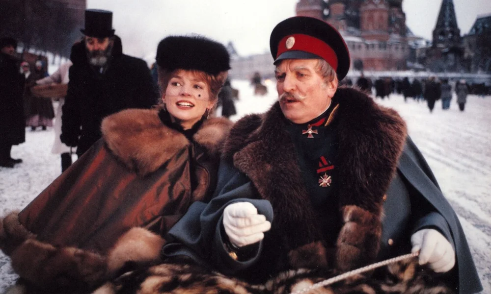 Зимняя Россия в фильме выглядит величественно. Дворцы и здание кадетского корпуса утопают в снегу, белый иней на ступенях блестит, словно драгоценная вышивка. Никита Михалков блестяще исполняет роль императора Александра III, а масштабные постановочные сцены дополняются живым оркестром Эдуарда Артемьева. Одной из самых ярких деталей производства стал тот факт, что ради ночной сцены создатели на несколько часов отключили подсветку кремлевских звезд – такого не делали со времен войны. Под роскошной исторической оболочкой история во многом остается интимной. Молодой Толстой мчится по заснеженным улицам в конке, сердце стучит под мундиром, и каждый поворот сюжета превращается в эмоциональную карусель. Персонажи ощущаются живыми людьми: каждый совершает ошибки и расплачивается за них под холодным небом.