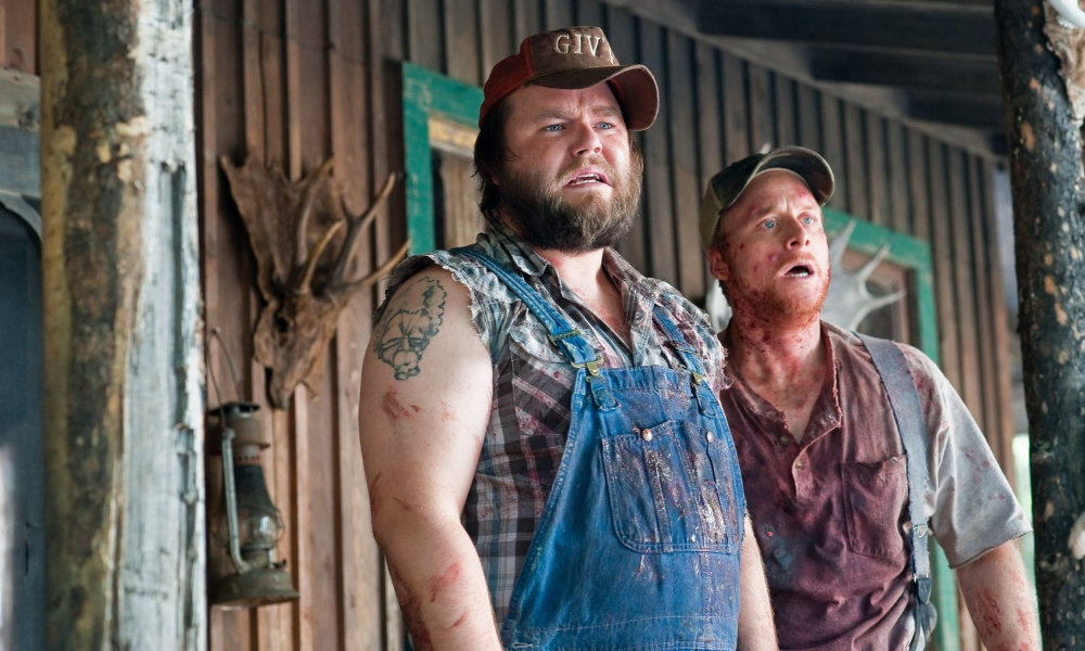 Такер (Алан Тьюдик) и Дейл (Тайлер Лабин) – двое обычных парней, которые не замышляют ничего плохого. Это лучшие друзья, решившие выбраться в лес. Они едут в полуразрушенную хижину, которую только что купили, чтобы потихоньку привести ее в порядок. Заодно – порыбачить и отдохнуть вдали от города. По соседству на берегу озера разбивает лагерь компания студентов. И становится ясно, что этим двум мирам не получится держаться на безопасной «культурной дистанции». Дейл с первого взгляда западает на одну из девушек, Эллисон (Катрина Боуден). Однажды с красоткой случается несчастье во время ночного купания. Такеру и Дейлу приходится экстренно ее спасать. Но друзья Эллисон видят лишь финал сцены. И принимают то, как парни затаскивают девушку без сознания в лодку, совсем не за помощь.