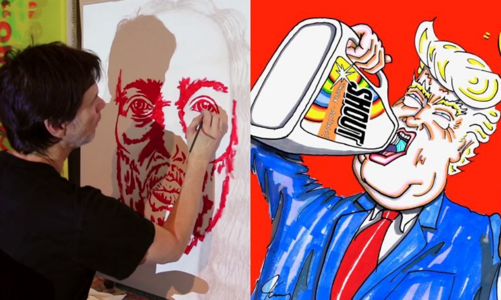 Пусть любимый комик детства почти пропал с кинорадаров, – китчевая трилогия о ежике Сонике не в счет – замелькал он на радарах политических. И, не поймите превратно, все благодаря художественному таланту. На деле вечно сияющий Керри рисовал чуть ли не с пеленок, но ярчайшие мазки написал в течение первого президентского срока Дональда Трампа, которому отчаянно бросал вызов карикатурами на грани фола. На полотнах актера республиканец, среди прочего, заливает себе в глотку отбеливатель, поедает фекалии и зеленеет аки злая ведьма Эльфаба. Все эти цветастые издевки пользовались гигантским успехом в прессе, пока Керри полюбовно не распрощался с графической сатирой.