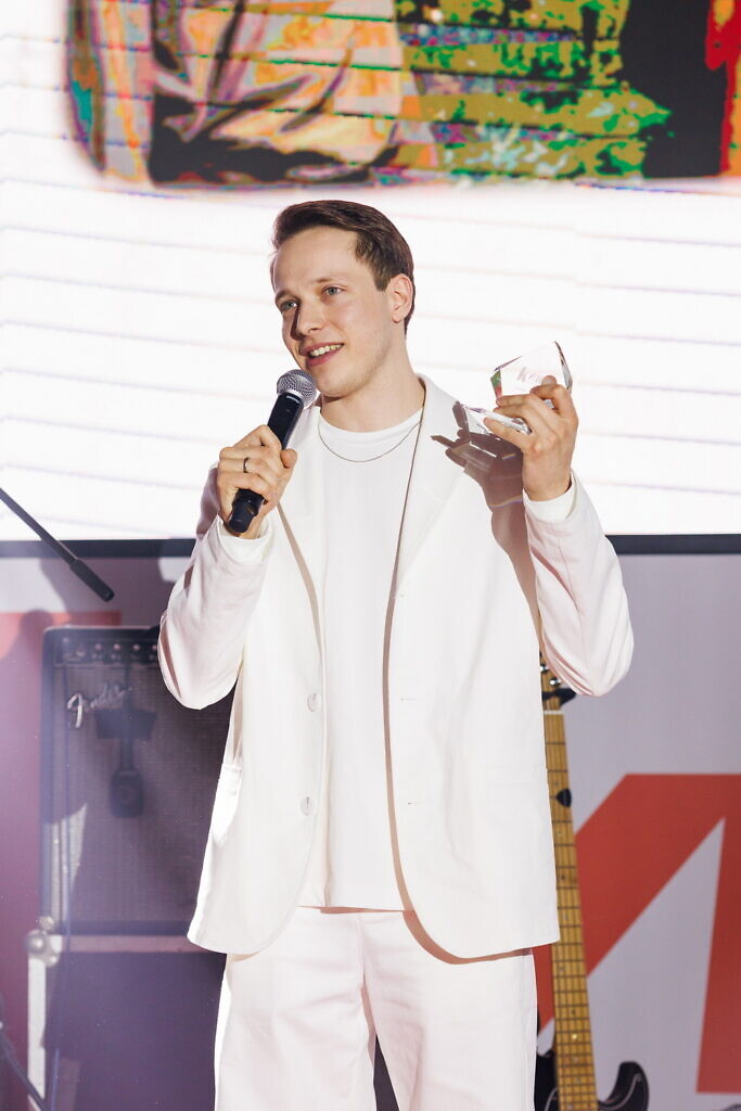 Первым на сцену поднялся Сергей Городничий – актер Театра на Бронной, отмеченный «КиноРепортером» за роль лейтенанта танковых войск Алексея Данилина или просто Лехи в самом популярном сериале 2025 года «Ландыши». Сергей известен также работой в сериалах «Цикады» и «Князь Андрей», но именно «Ландыши» подарили ему всеобщую любовь и известность.
