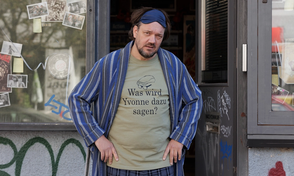 Небритый скуф в халате – эдакий немецкий Чувак, архетипичный гик-лузер. Первое, что он лицезреет при пробуждении, – постер кубриковского «Убийства». На рабочем месте, за кассой прокатного салона «Последний магнат», его окружают плакаты «Разговора», «Поговори со мной» и прочей классики, что льстит вкусу Хартунга, однако не помогает платить по счетам. Именно меркантильные соображения заставляют его согласиться на интервью с Ландманном. Но когда его помятая физиономия попадает на обложку, а обладатель этой физиономии – на ток-шоу (где, разумеется, заливает с три короба), внезапная слава затуманивает разум Михаэля. А совесть до поры до времени предпочитает дремать. Ведь статус бунтаря, пострадавшего за убеждения, обеспечивает его рекламным контрактом и романтической связью: самозванец сближается с прокурором Паулой (Кристиана Пауль), пассажиркой того поезда-беглеца, которая видит в нем своего спасителя.