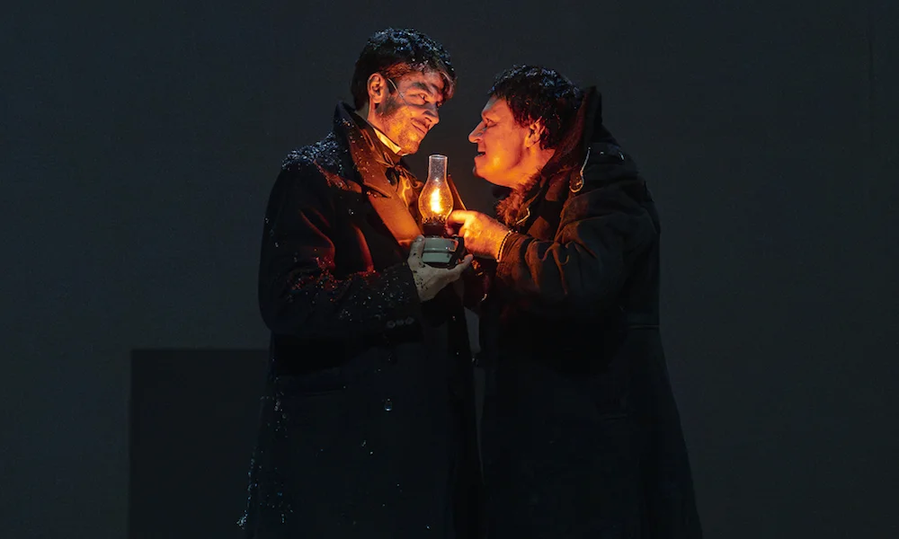 Промедлений не предусмотрено: первая же сцена – подробное погружение в обстоятельства, момент, собравший в едином пространстве почти всех действующих лиц, в многообразии которых с непривычки можно растеряться. Ослепленная материнской любовью Ставрогина (Елена Жданова) желает тут же, на месте, расквитаться и с хромоножкой Лебядкиной (Елена Дриневская), которую она не без причины подозревает в новообретенном родстве, и с ее неприятным братцем (Денис Казанцев), в чьем пьяном сознании страх ведет борьбу с алчностью, и даже с закадычным компаньоном Степаном Трофимовичем (Константин Телегин), наконец публично опозорившимся – не в последнюю очередь благодаря стараниям собственного сына Петруши (Никита Воробьев), едва прибывшего в город.