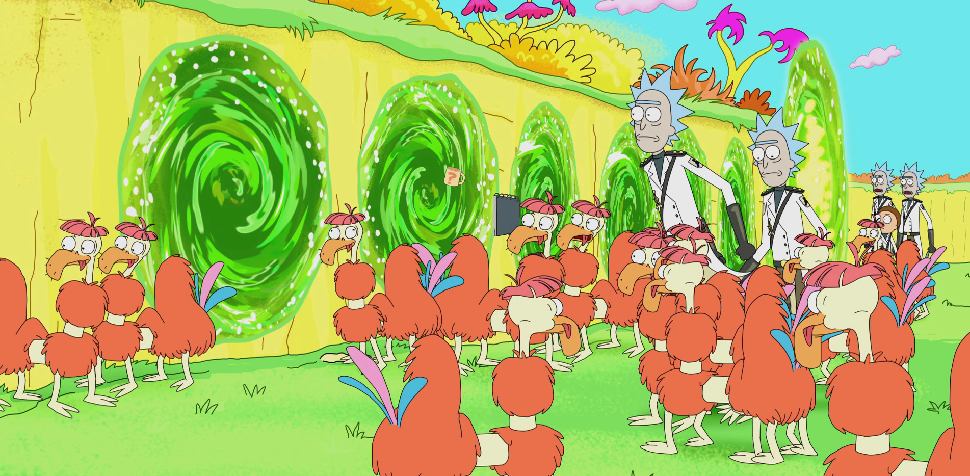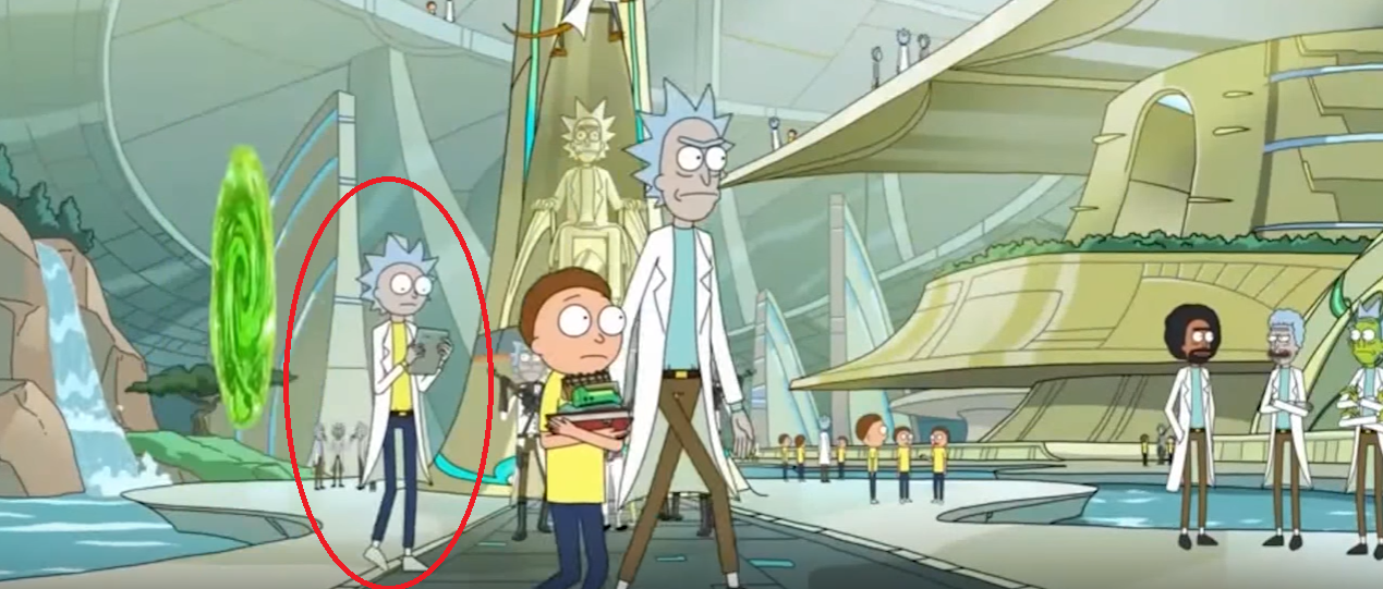 Иначе говоря, он понимает, что является персонажем мультсериала. Что указывает на это? Во-первых, герой постоянно делает мета-референсы к другим эпизодам будто читал сценарий. Во-вторых, он может обращаться прямиком в экран, ломая четвертую стену между миром сериала и зрителями. Вполне вероятно, что Рик действительно понимает, что он всего лишь персонаж мультфильма, иначе вряд ли стал бы шутить про свои приключения, деля их на сезоны.