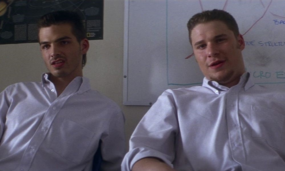 Кто бы мог подумать, но именно на «Донни Дарко» пришелся полнометражный дебют эксцентрика, что поднял на себе добрую половину комедий 2000-х и 2010-х, а ныне владеет «Киностудией». До эпизодической роли у Келли 19-летний Роген успел засветиться только в жутко недооцененных «Хулиганах и ботанах» на малых экранах, а с этого момента уверенно обосновался и на больших. Пусть начал и с, кхм, малого.