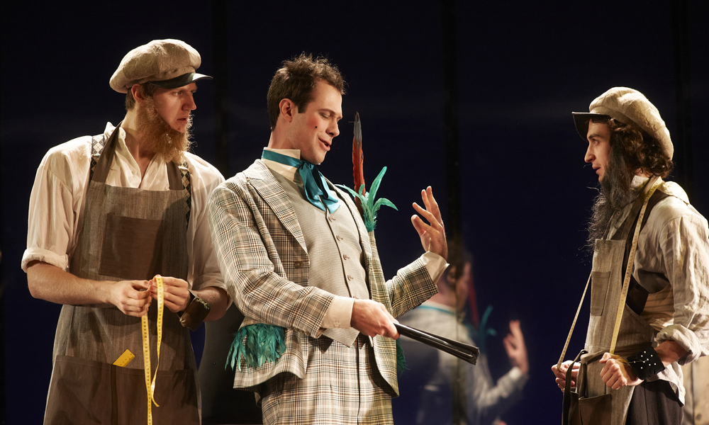Под шумок туда же прибывают переодетые Генрих и его друг Христиан (Мамука Патарава). План побега проваливается, и приятели решают играть в открытую: обещают жениху сшить свадебный наряд из ткани, которую способны видеть только умные люди. Разумеется, раздутый госаппарат в эту категорию не попадает: все, что умеет королевское окружение, это пресмыкаться, обвинять других и урывать себе кусок побольше.