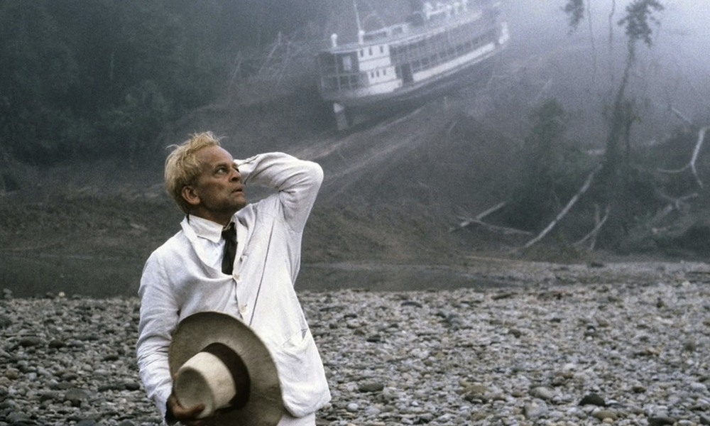 Фильм Вернера Херцога рассказывает об авантюре упрямого мечтателя в перуанской Амазонии. Режиссер решил, что знаменитую сцену с буксировкой парохода сделает по-настоящему – без спецэффектов. Съемочная группа действительно потащила 320-тонное судно «Молли-Аида» вверх по 40-градусному береговому склону. При таком подвиге в дикой жаре и мокрой растительности трое человек получили серьезные травмы. Представьте только: сотни людей с веревками и блоками тащат гигантское судно по болоту – и все это снято камерой без «индустриальной магии».