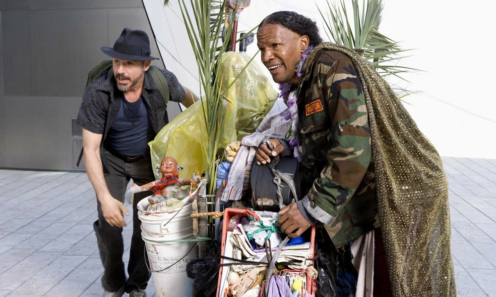 «Солист» изначально позиционировался как завершение невероятного камбэка Роберта Дауни – младшего в 2008 году. В мае он полноценно вернулся из актерского небытия в образе Тони Старка, а три месяца спустя вновь приятно удивил мир блэкфейсом в «Солдатах неудачи». Кто бы мог подумать, что именно участие в комедии Бена Стиллера принесет актеру номинацию на «Оскара». Казалось бы, на эту позицию по стандартам Киноакадемии больше подходил «Солист», однако его отложили до апреля 2009-го. Да и сама картина в итоге оказалась не лучшим претендентом на статуэтку. Тем не менее дуэт Дауни и Джейми Фокса все равно получился очень трогательным.