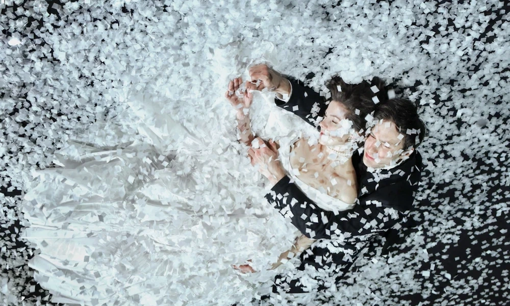 Сценическое пространство спектакля, созданное художником Ольгой Шаишмелашвили, заполняет нарезанный из бумаги снег. Он превращается в зримое воплощение неотвратимого: роковой вальс на московском балу и страшная метель на железнодорожной станции между Петербургом и Москвой. Анне суждено раствориться в этой белой метели и исчезнуть.