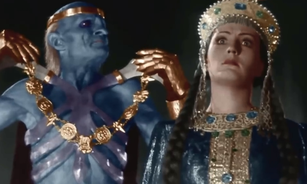 Первым зловещий кинообраз примерил Георгий Милляр, причем результат превзошел любые ожидания и на многие годы стал каноническим. Сюжет тоже отвечал оригинальным сказаниям – Кащей (в те времена написание этого слова через «а» было корректным, сейчас же такой вариант признан устаревшим) похищает невесту русского богатыря и разоряет его деревню, заставляя последнего встать на защиту родной земли. Его актуальность определялась временем: с началом Великой Отечественной войны Александр Роу предложил снять кино о беззаветной любви к Родине и мужестве великих предков. Но осенью 1941 года режиссер был занят выпуском агитационного киноальманаха, и к своему замыслу смог вернуться только в эвакуации. В Сталинабаде (ныне Душанбе) как раз и сняли Кащеево царство. Его повелителем сразу назначили Милляра, который еще на обсуждении показался с выбритой головой и бровями.