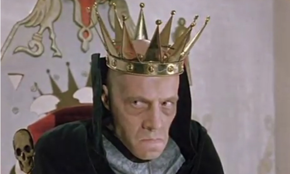 Еще более эксцентричный, театральный образ создал Олег Табаков. Его Кощей – во многом побочная фигура, часть своеобразного квеста, который должны выполнить три Ивана, один из которых является настоящим царевичем, чтобы получить причитающееся по праву наследство. Именно в кощеевом плену томится прекрасная Милолика (Марина Зудина), которую состязателям нужно освободить. Но что мы видим вместо классического злодея? Того, кто воспользовался бессмертием с максимальной для себя выгодой и с обманчивым добродушием подтрунивает над штампами, сложившимися в его отношении: «Не похож? Думали, худой да бледный? Почему? Я ведь в подвале не сижу, на цепях не вишу и поправился за триста лет».