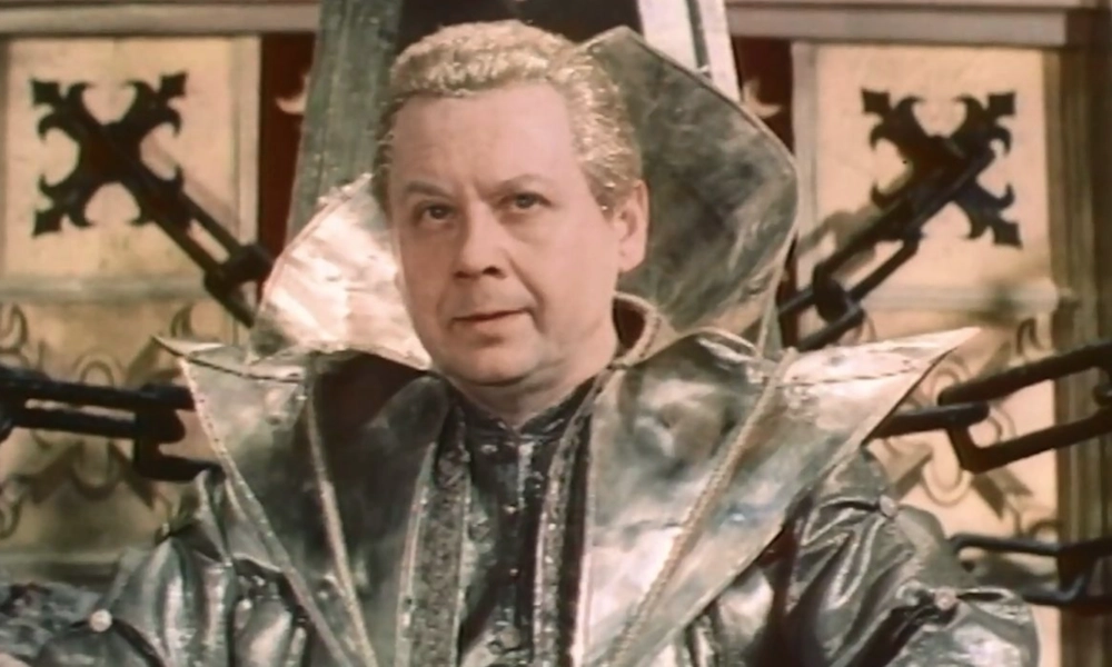 Еще более эксцентричный, театральный образ создал Олег Табаков. Его Кощей – во многом побочная фигура, часть своеобразного квеста, который должны выполнить три Ивана, один из которых является настоящим царевичем, чтобы получить причитающееся по праву наследство. Именно в кощеевом плену томится прекрасная Милолика (Марина Зудина), которую состязателям нужно освободить. Но что мы видим вместо классического злодея? Того, кто воспользовался бессмертием с максимальной для себя выгодой и с обманчивым добродушием подтрунивает над штампами, сложившимися в его отношении: «Не похож? Думали, худой да бледный? Почему? Я ведь в подвале не сижу, на цепях не вишу и поправился за триста лет».