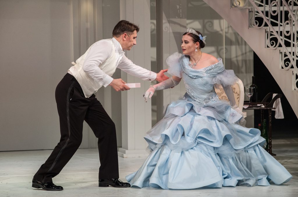 Совершенно невероятной предстала в спектакле Яна Сексте в роли миссис Пирс, домоправительницы у эксцентричного профессора Хиггинса. Она сумела создать образ, передающий ту знаменитую английскую чопорность, которая знакома всякому по классической литературе. И надо отдать должное Валентину Юдашкину, так угадавшему с ее костюмом. Тот самый случай, когда артист и его одеяния составляют единое целое. Впрочем, по-английски элегантны и все мужские костюмы — но здесь уже речь идет в первую очередь о качестве. Исполнители главных ролей в течение спектакля переодеваются многократно. Вольно или невольно останавливаешь внимание и на безупречных деталях, и на тщательно подобранной обуви. Так что дебют Юдашкина в качестве театрального художника можно считать успешным. Как и дебют исполнительницы главной роли Дарьи Антонюк.