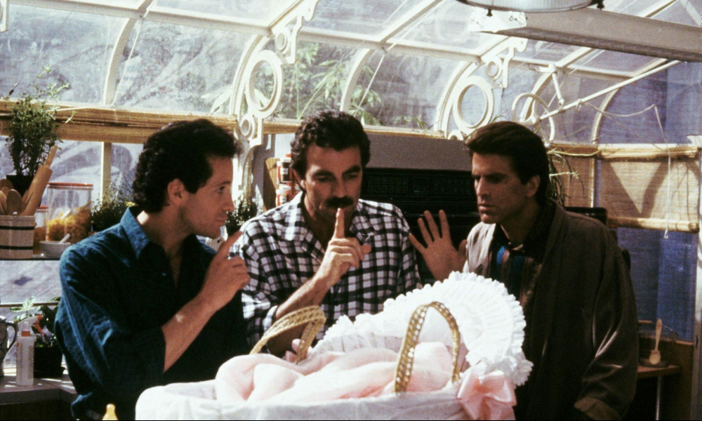 Громкий успех фильма объясняется без чудес. Это ремейк французской истории, но в американской версии все легло на нужные нью-йоркские ритмы. На экране – солнечные фасады Манхэттена, джаз, стильная суета «яппи» и легкая комедийная интонация, которая в 1987-м сработала как часы. Режиссер Леонард Нимой (более известный как Спок из «Стартрека») не пошел в сторону грубости, хотя сюжет легко мог скатиться в шуточный балаган. Вместо этого он делает упор на человеческое взросление. И процесс этот не угнетает – наоборот, дает героям шанс выдохнуть и посмотреть на себя новыми глазами.