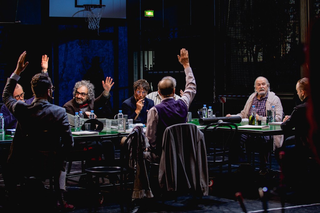 И вот эта синергия свежей крови и опыта мэтров сцены дает особый эффект реальности происходящего. А тема сострадания и милосердия объединяет всех, недаром слоган фильма был «Для всех и про каждого». Двенадцать совершенно чужих друг другу мужчин, начиная заседание как скучную рутину, на глазах публики устраивают шоу с исповедями, драками, провокациями и раскаянием, заставляя зал как на американских горках, то смеяться, то замирать от неожиданности, то сглатывать ком в горле.