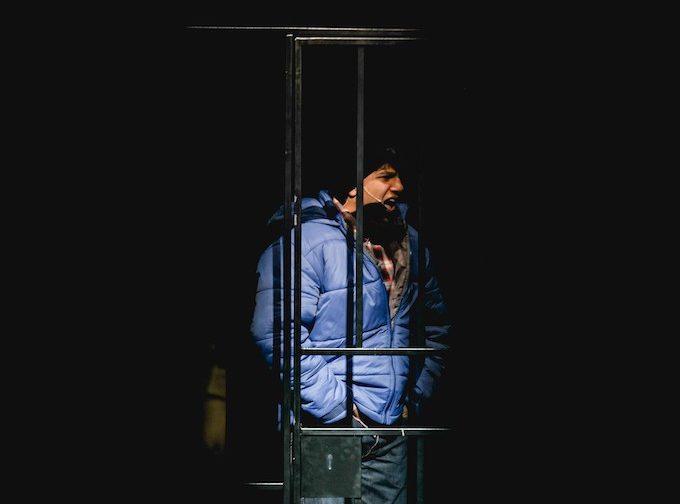 Визуализация пространства в спектакле поражает своим масштабом и простотой, декорации аскетичны. На сцене – стол, стулья, спортивная атрибутика. В отдельные моменты мы видим сидящего за столом пристава и «одиночку», где мерзнет в ожидании приговора обвиняемый мальчик. Но экраны по краям сцены и мобильная камера в руках актеров дают возможность заглянуть в их глаза и оказаться за столом вместе с присяжными. И все это действо окутано психоделикой музыки композитора Эдуарда Артемьева, многолетнего друга и творческого партнера Михалкова.