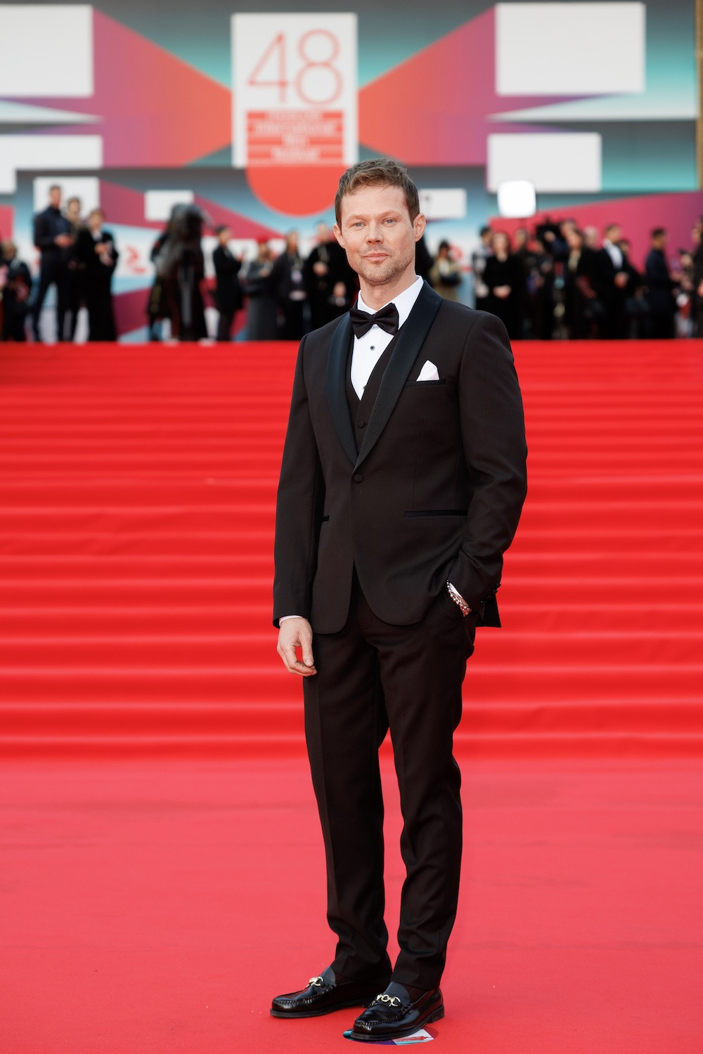 К счастью, не только прелестные дамы тщательно подготовились к открытию фестиваля –модничал на Пушкинской площади и сильный пол. Так, например, актер Даниил Воробьев, которому выпала честь объявить о старте 48-го смотра ударом символической хлопушки, отдал предпочтение старой-доброй классике – элегантному костюму-тройке, который он дополнил лакированными мокасинами с золотистой пряжкой.
