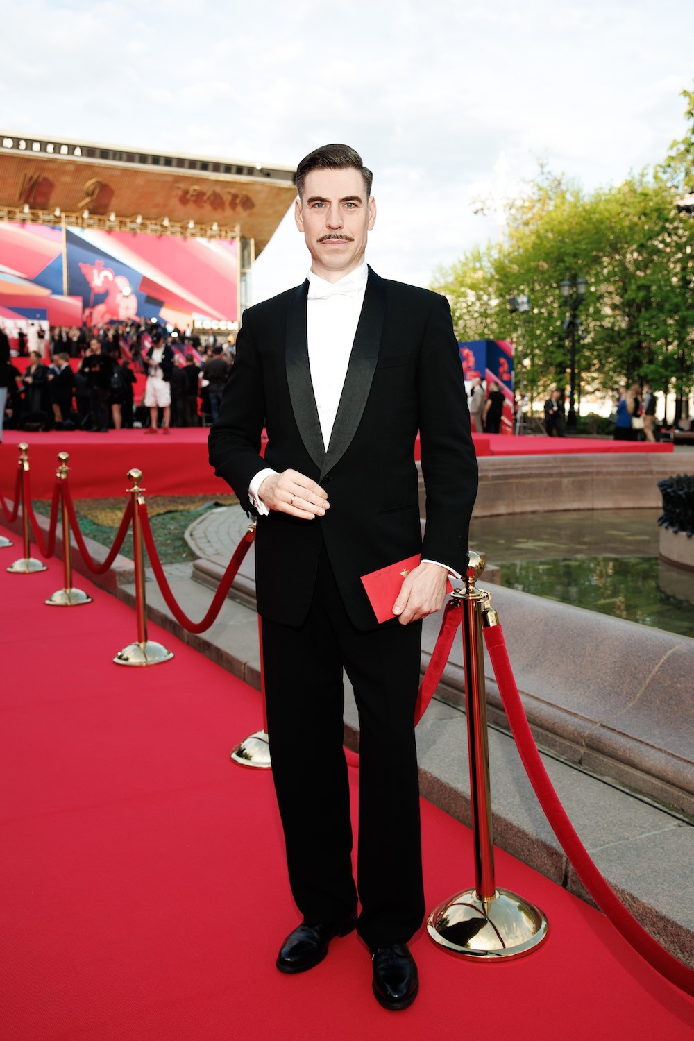 Алексей Чадов, который вел церемонию закрытия, перед началом мероприятия позировал фотографам в расслабленном образе. Классический смокинг он дополнил лаковыми туфлями и солнцезащитными очками, а галстук-бабочку развязал. На сцене, впрочем, актер появился уже при полном параде.