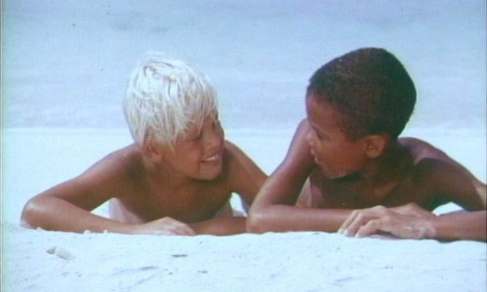 В конце 1960‑х режиссер и бывший банковский служащий Ральф Блюмке решил: история про одиночку должна звучать иначе, если вместо взрослого попадет на остров ребенок. Маленький Робби оказывается на пустынном пляже, пугается ядовитых змей и падает в лагуну. Из воды его вытаскивает темнокожий мальчишка, который не знает английского. Робби дает ему всеми известное имя, учит его словам и проводит с ним дни, бегая по джунглям. Вскоре оба внезапно раздеваются и забывают, что такое стыд. Остров у Блюмке выглядит детским Эдемом, но конфликт все равно присутствует. Между дружбой мальчишек и миром за кадром, который даже на необитаемом берегу упрямо помнит, кто здесь Робинзон, а кто Пятница.