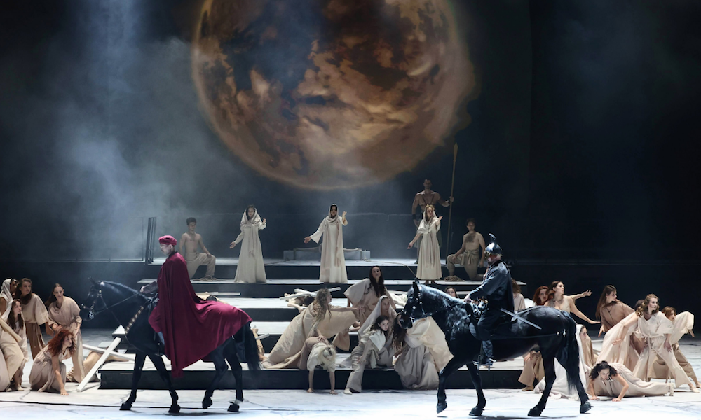 В первую очередь постановщика привлекло то, что эта сторона романа заставляет думать, сопереживать и, самое главное, сострадать. Камерность истории при этом не отменяет ее зрелищности и размаха: в «Романе» задействована вся машинерия Большой сцены. В массовых сценах принимает участие более 60 танцовщиков. Наконец, впервые за много десятилетий открылся танковый подъезд, откуда появляются настоящие вороные кони.