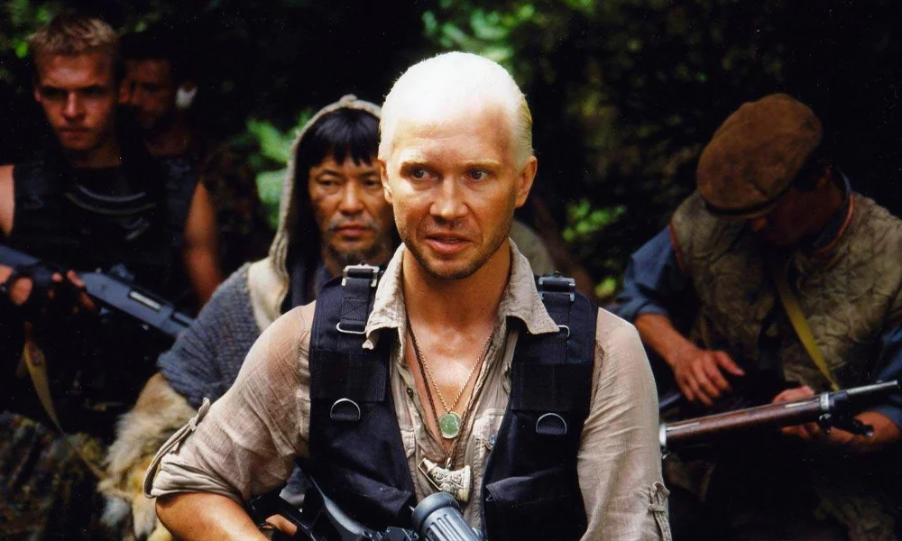 Точно так же и Владимир Машков играет не просто главного героя, а матерого офицера спецназа, который ловит рыбу голыми руками, умеет мастерить из палок смертельные ловушки, как заправский Джон Рэмбо, и в одиночку успешно противостоит ватаге разбойников-белогвардейцев под предводительством злодея Евгения Миронова, ведя к тому же за собой по дикой тайге группу гражданских и умудряясь параллельно флиртовать с неприступной барышней. А под конец, напевая песенку про отважного капитана, легко и непринужденно учиняет геноцид негодяев, разделываясь с ними различными способами.