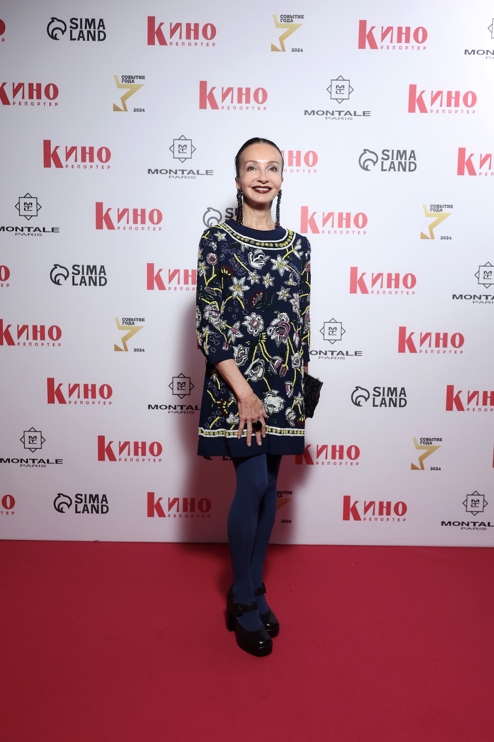 Оригинальным стал выбор актрисы и хореографа Аллы Сигаловой. Ее короткое платье цвета морской волны, расшитое шелковыми цветами и орнаментами, и колготки в тон ярко выделялись на фоне дорожки. А броские серьги в этностиле и темно-красная помада завершили яркий образ.