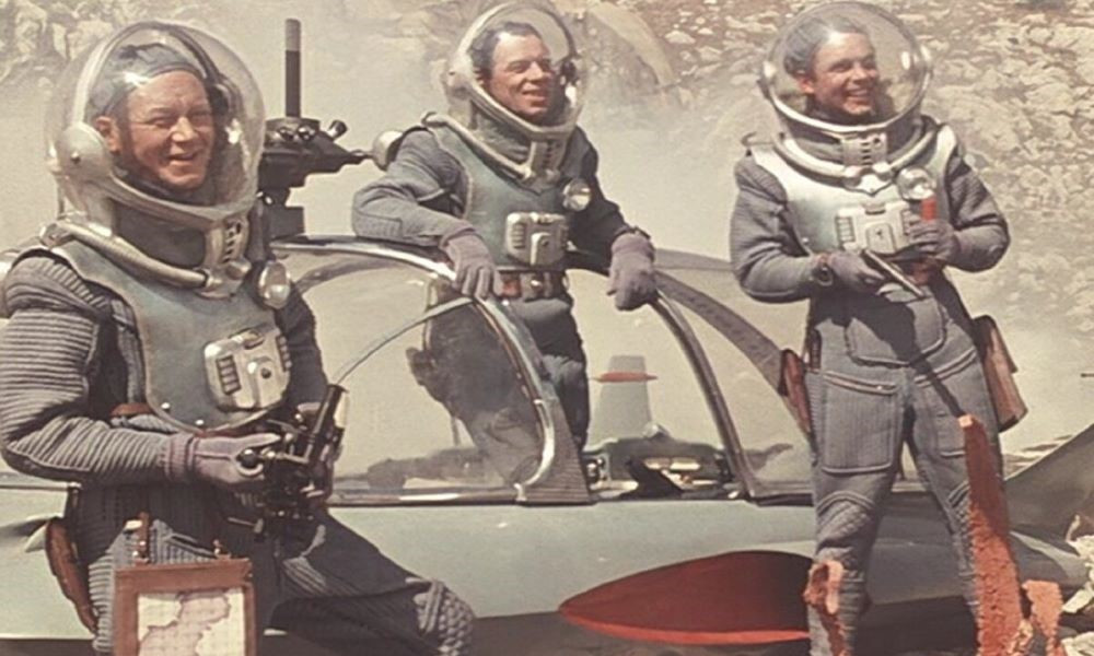 А в «Планете бурь» (1961) Павла Клушанцева речь и вовсе идет о космической миссии на Венеру. Правда, инженерные решения (съемки велись с использованием уникальной комбинированной технологии, и научные изыскания, позволившие предположить, как выглядит рельеф далекой планеты), в нем гораздо интереснее костюмов, ограничивающихся скафандрами, из поролона и оргстекла. Пришлось потрудиться над резиновыми костюмами ящеров и железным роботом Джоном, чье облачение весило около 50 кг, несмотря на то что было из пластика.