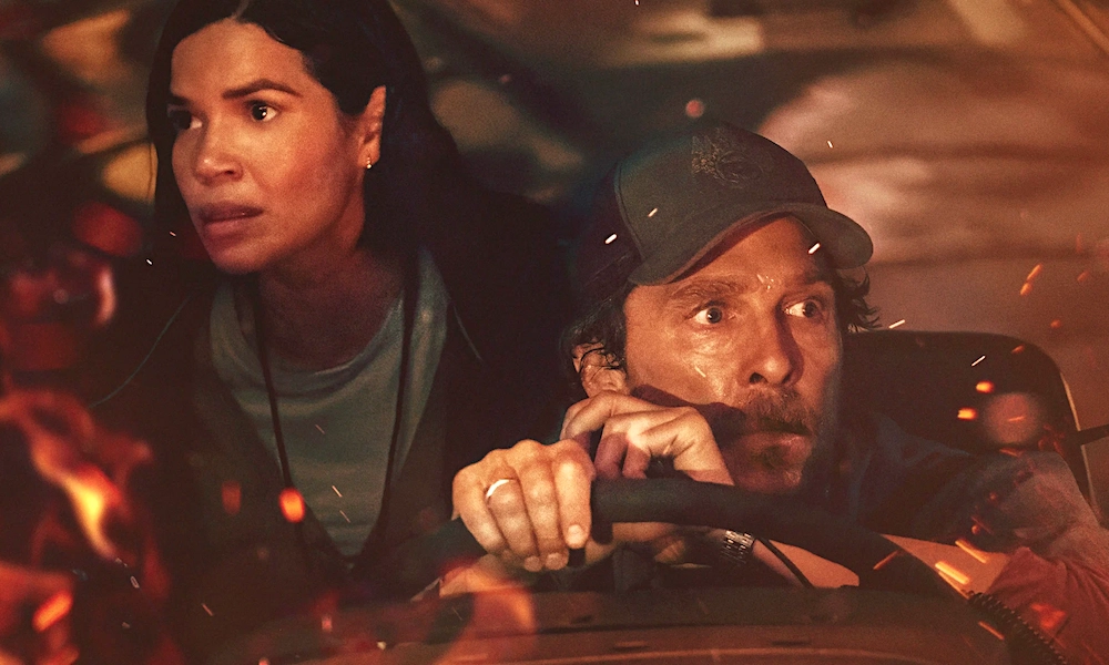 Даже в этих сценах, кровоточащих внутри, но внешне относительно бытовых, камера трясется, как руки алкоголика. Что уж говорить об эпизодах более поздних, когда кругом полыхает огонь, и автобус, истерично лавируя между падающими столбами, сигналящими внедорожниками, суетящимися беженцами, мчится вперед, сквозь пламя и дым, а вопли детворы и скрип плавящихся покрышек сливаются в тревожную симфонию хаоса. Пол гринграссит по полной: «Школьный автобус» – нервный, дерганый, пропотевший и прокоптившийся экшен, что периодически сжигает барьер меж игровым кино и доком из гущи событий. Когда в кадре не маячат напряженные лица МакКонахи и Ферреры, мы переключаемся на менее узнаваемых Эшли Эткинсон (диспетчер автобусного парка) и Юла Васкеса (начальник пожарной службы), которые пытаются сохранять спокойствие, но ситуация молниеносно ускользает из-под их контроля, из-под чьего угодно контроля, а фильм вырастает из истории конкретной личности в хроники глобальной катастрофы и всеобщей растерянности.