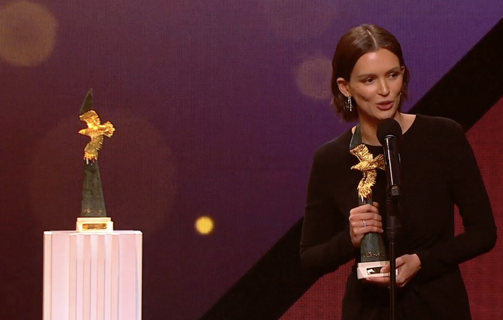 «Вертинский» стал лучшим сериалом онлайн-платформ. Награду из рук Андрея Бурковского приняла актриса Паулина Андреева от лица режиссера проекта Авдотьи Смирновой.