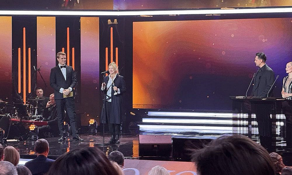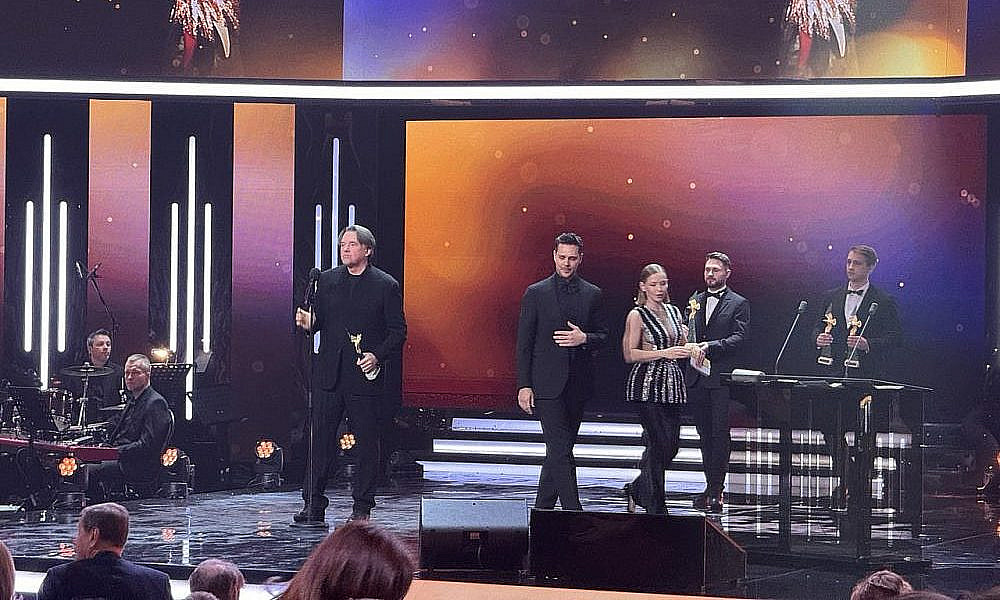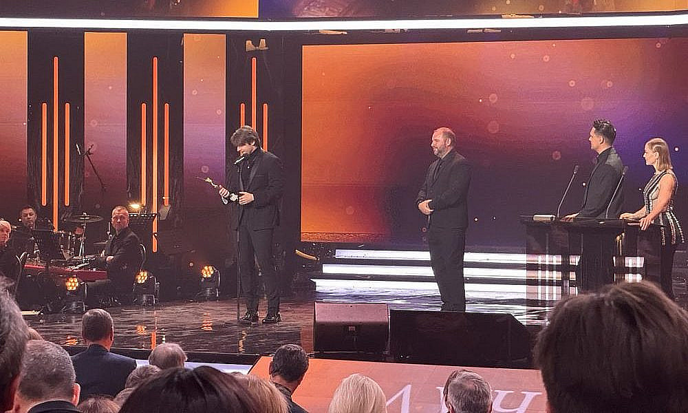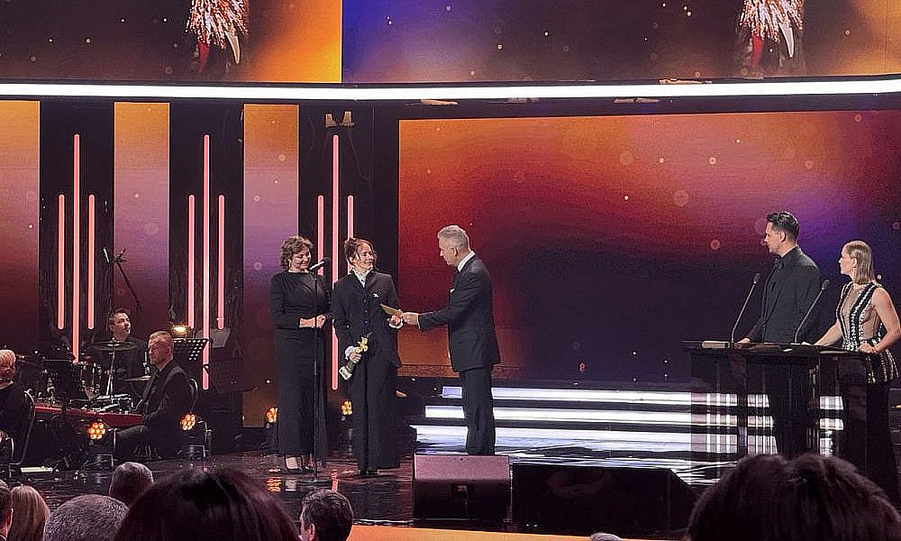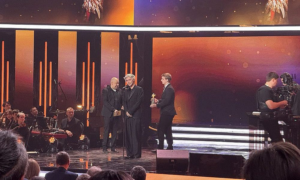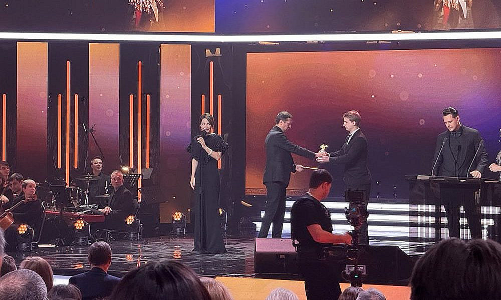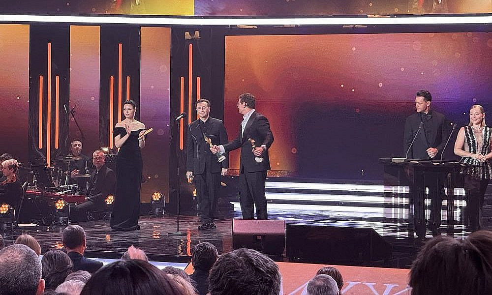Для оглашения следующих лауреатов вышли Рената Пиотровски и Артем Ткаченко. Как отметил артист, у присутствующих есть возможность оценить и вручить награды фильмам, которые не сгенерировал искусственный интеллект и не создал какой-то чат-бот.