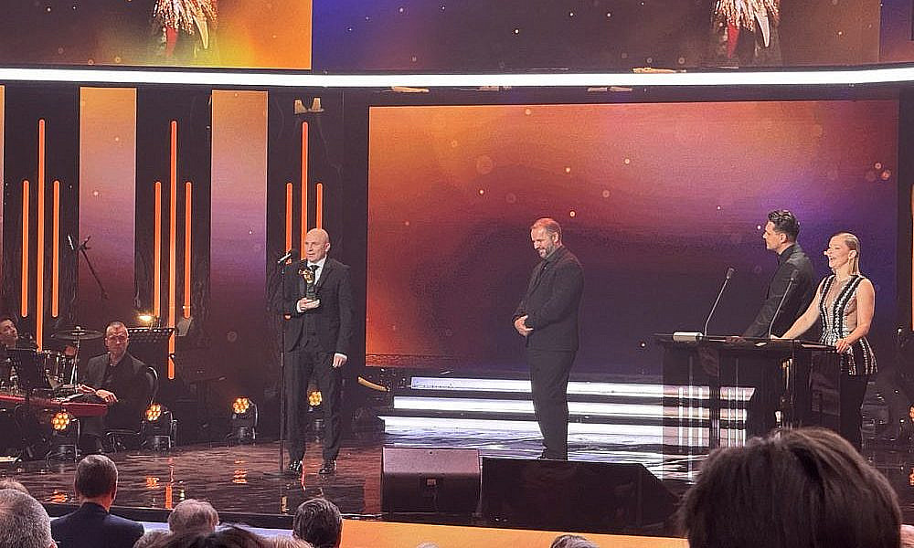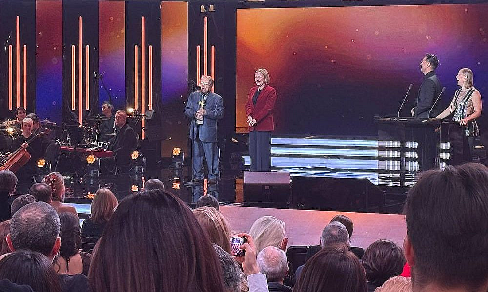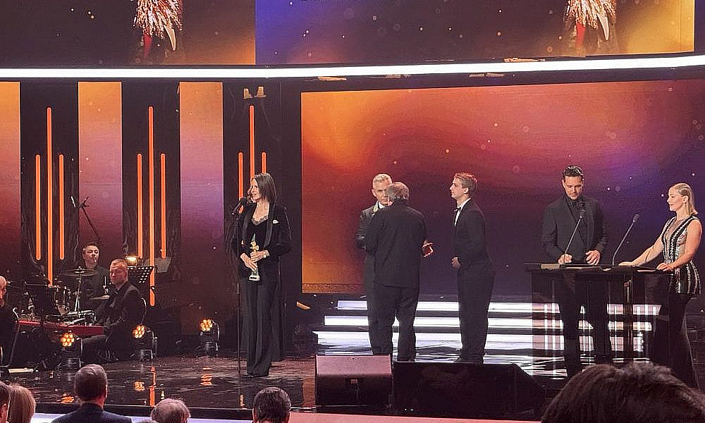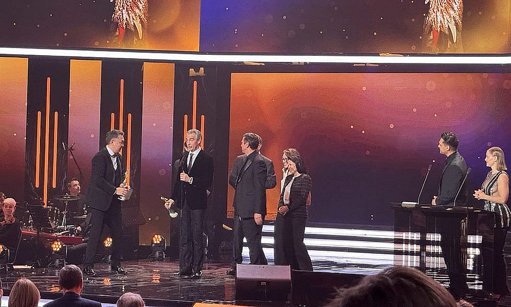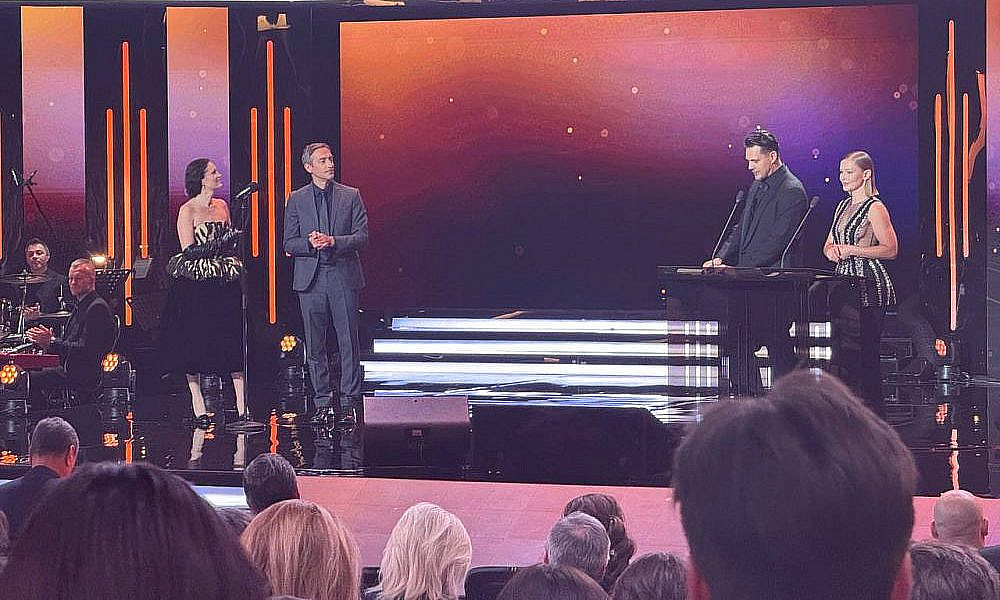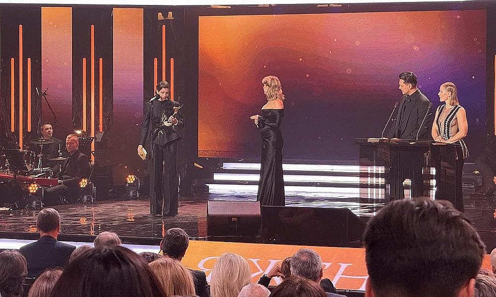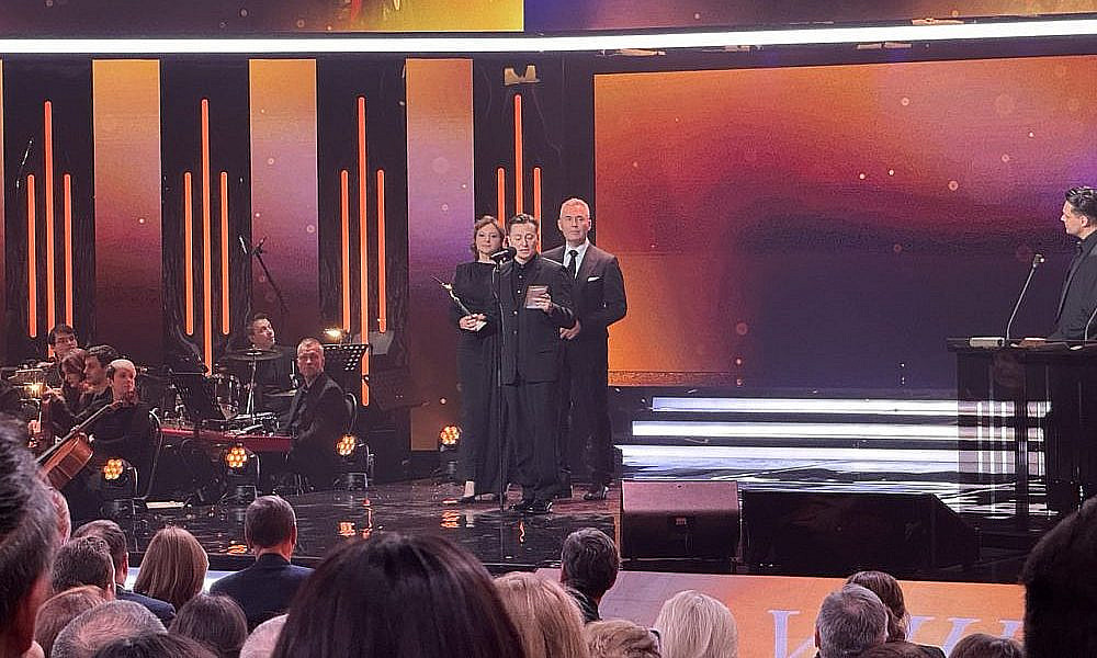 Для оглашения следующих лауреатов вышли Рената Пиотровски и Артем Ткаченко. Как отметил артист, у присутствующих есть возможность оценить и вручить награды фильмам, которые не сгенерировал искусственный интеллект и не создал какой-то чат-бот.