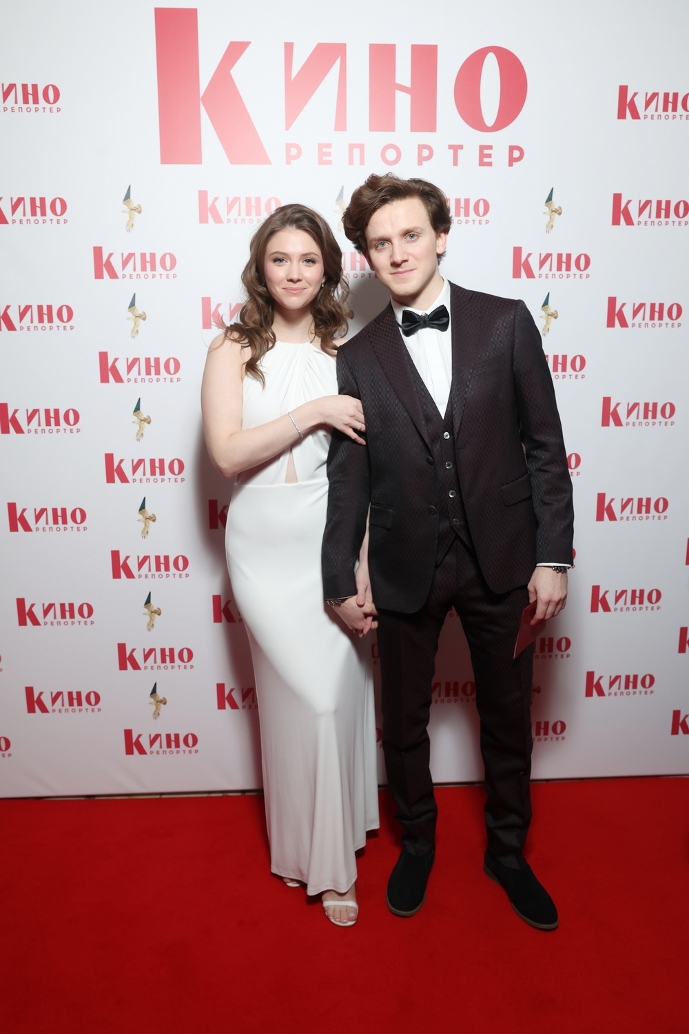 На классическом контрасте черного и белого сыграла и молодая актерская парочка – юная лауреатка премии «Событие года» Тина Стойилкович, прямо-таки сиявшая от счастья в нежном платье в греческом стиле, и ее кавалер Федор Федотов, по всей видимости, фанат ретро-смокингов с иголочки.