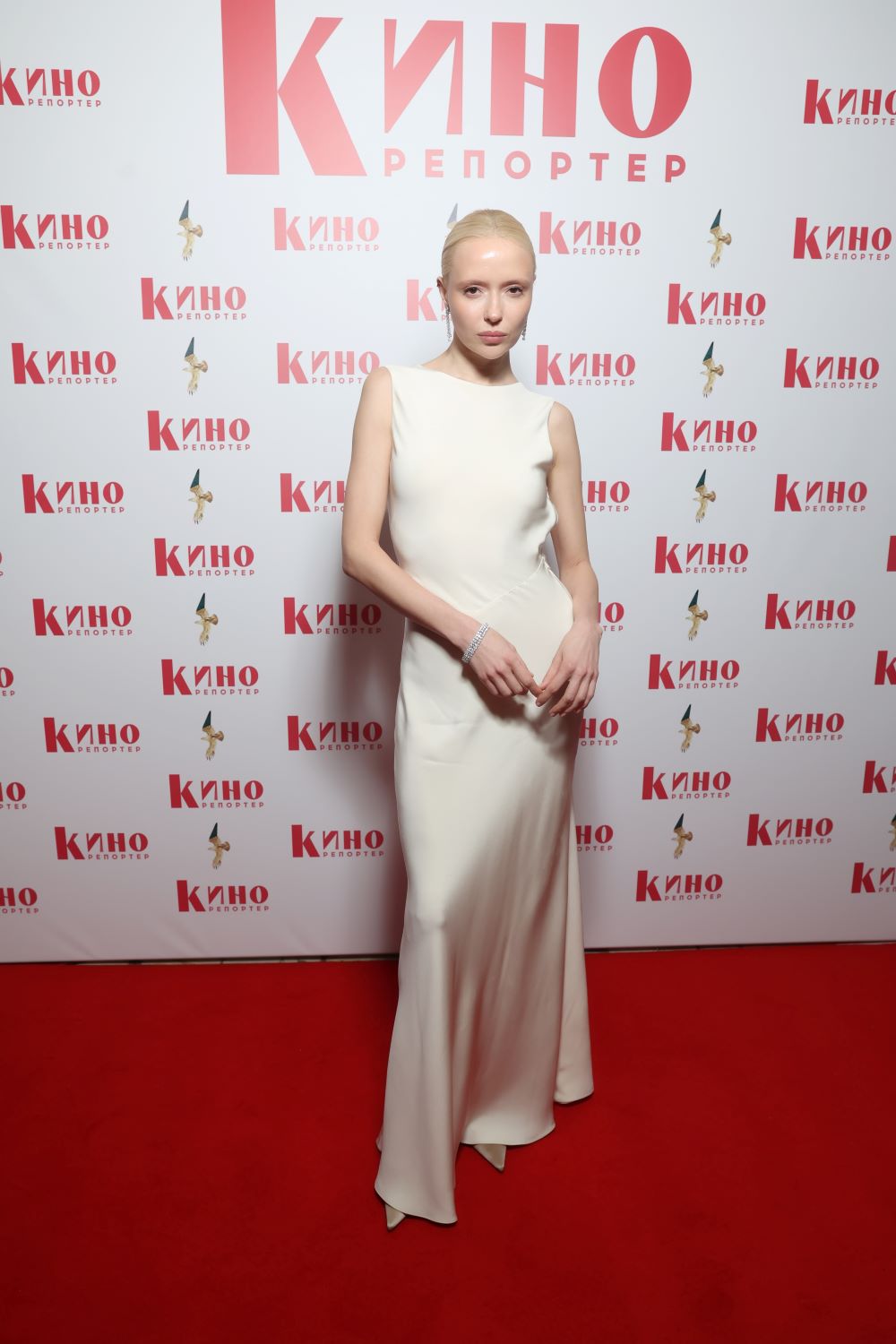Полностью в красном на красную дорожку же осмелилась выйти Алена Долголенко. Обладательница премии «Аванс» за роль в фильме «Пророк. История Александра Пушкина», ставшем триумфатором «золотой» церемонии, красовалась перед фотографами в очаровательном платье в пол, дополненным утонченным колье.