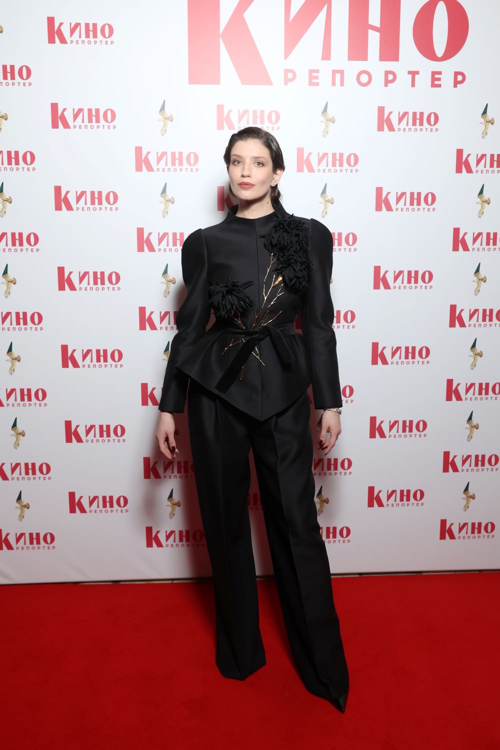 Ее кокетливо поддержала Ольга Лерман, которая унесла домой заветную статуэтку за роль в хитовом «Плевако». Из-под черного смокинга-сюртука в винтажном стиле виднелась белая рубашка с романтичными оборками, рифмующаяся с окрыленной брошкой звезды, украсившей февральский номер «КиноРепортера».